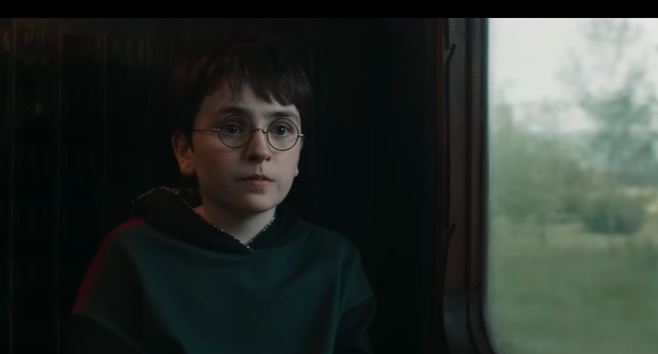 O teaser também mostra o primeiro contato de Harry com Rony Weasley, interpretado por Alastair Stout, estabelecendo o início da amizade que estrutura a narrativa ao longo da saga.